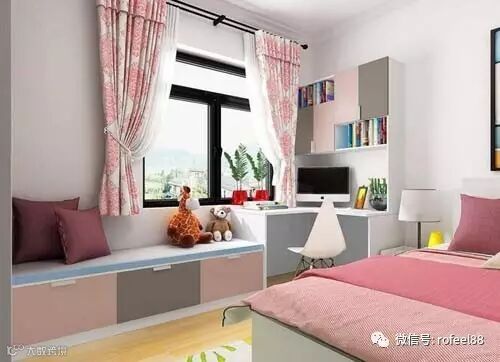 在卧室配有飘窗,不但可以享受充足的室内光线,还可以扩大室内视野,饱览室外秀美景观,主卧的飘窗更注重体现温馨宁静。飘窗还可以作为很不错的观景台,躺在窗台上,上面放上两个靠垫,或坐或卧,白天看车水马龙,晚上看满天星斗。