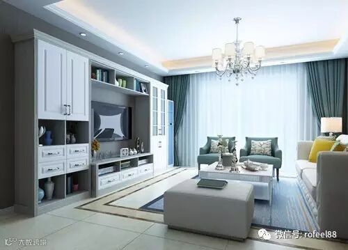 时尚简约的线条,低调精致的造型,密封去与封闭区的合理布局,有掩门组合、抽屉柜、玻璃门,简欧风格电视柜也可以如此简单利索,整个客厅给人干净清爽的感觉。