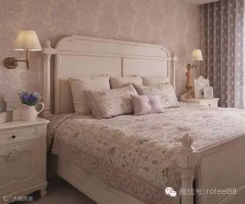 主卧淡雅的紫色壁纸,搭配同色系窗帘、白色木地板,让整个人都好似包围在优雅浪漫的温柔气息中。