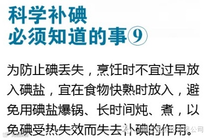 【碘盐怎么吃?你应知道的9件事!】①碘是人必需的 ②目前仍应吃碘盐 ③人体储存的碘可用3个月 ④未发现甲状腺患者增多与碘盐有必然联系 ⑤孕妇更需补碘 ⑥孕妇碘不足会影响孩子 ⑦孕妇吃不加盐饮食,如母乳喂养,会影响婴儿 ⑧吃碘盐要定量 ⑨烹饪时碘盐不宜过早放。今天是防治碘缺乏病日,转起学习!