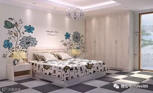 精美的吊灯,黑白相间的地板,净白墙上盛开的花朵,卧室中柔和的色调与黄梨木衣柜相衬,让整个房间停留在雅致迷人的氛围里。