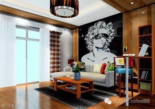 本空间的设计是非常有创意的,而且很大胆,我们可以看到沙发背景墙的设计给人的感觉是非常强大的视觉冲击,德国森林的设计风格展现得淋漓尽致,简洁而粗狂的原木纹理让空间的质感直线上升,吧台设计非常前卫,空间变得很丰富。