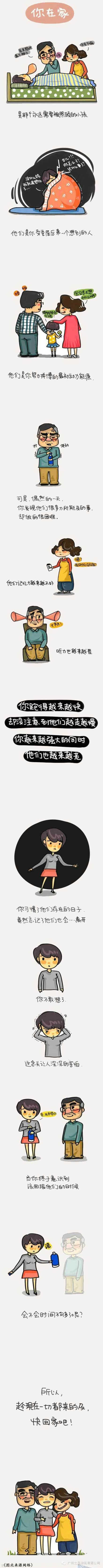 你不在家,他们清粥小菜;你在家,他们每天准备一桌好菜。你不在家,他们一遍遍看你的空间;你在家,他们有说不完的叮嘱。你不在家,自己扛起生活重担;你在家,偶尔做个家务他们就感动不已…小长假期间,多留些时间给父母吧!