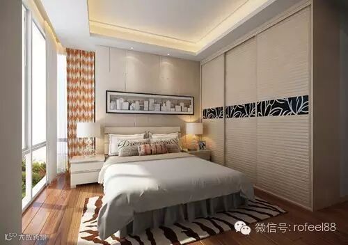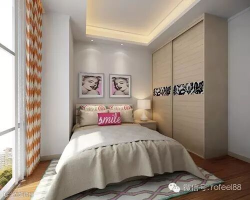 落地窗让视野更开阔,心境好像也会随着房间变得豁然开朗。简约的天花板的背景灯暖暖的光让卧室更加温馨,顶天立地式是定制衣柜不留卫生死角,收纳功能要比普通衣柜更强大~