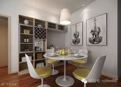 客厅的另一角就是餐厅的空间。酒格柜专为爱藏酒懂生活的你打造,酒格下面还贴心的设有高脚杯收纳架,让品酒更方便更有情调!餐边柜可以收纳一些泡菜、酱料和调味品,也可以作为藏酒的展示架,为了避免餐桌上纸巾、调料乱糟糟的情况,量身打造一款餐边柜真的很重要。