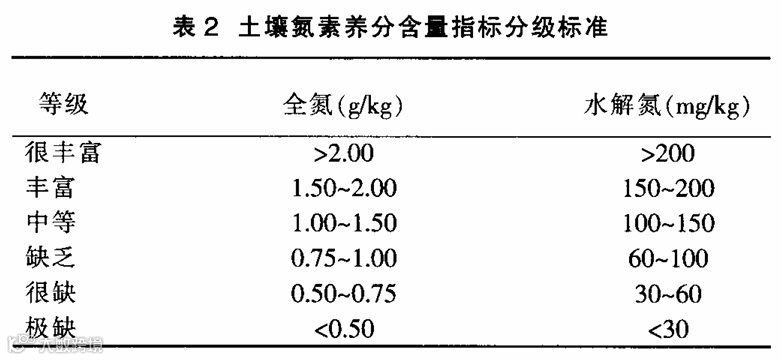 土壤养分含量指标分级标准见表2。