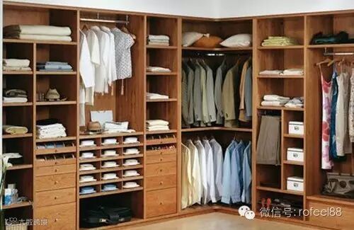 如果你有一个善于收纳衣物的另一半或自己可以把衬衫叠的整齐,那么隔板则是最好的收纳方式。根据颜色和风格分区存放,大大缩短寻找时间。