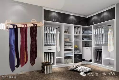 根据使用习惯对衣柜内部的功能区域进行分层设计,如上层放外衣,中层放衬衫、皮带等常取放衣物,下层用来悬挂衣裤则最合适不过了。