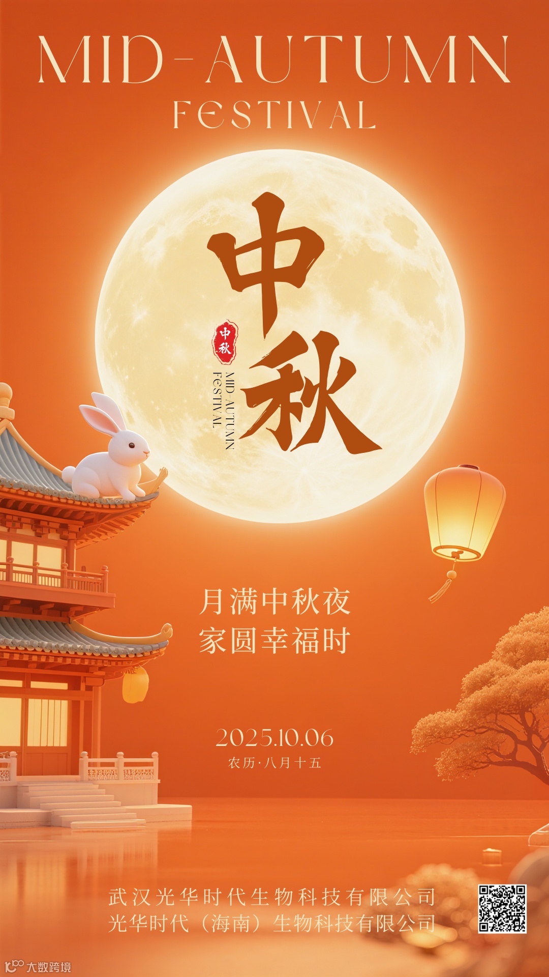 月满中秋,山河锦绣。值此中秋佳节,武汉光华时代生物科技有限公司和光华时代(海南)生物科技有限公司谨向广大农户、合作伙伴及社会各界朋友,致以最诚挚的问候和最美好的祝福!愿清辉遍洒,四海团圆;愿沃土丰饶,五谷盈仓。