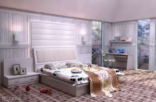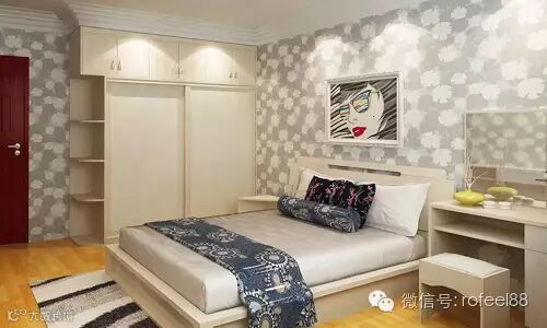 到顶的移门衣柜,再也不用担心房间有横梁而无计可施了;三角形的床头柜,合理利用了床与衣柜之间的空间;精美的梳妆台,满足了众多女生爱美的愿望,真是不费吹灰之力就取悦了女主人呢!
