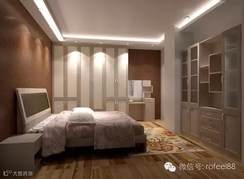 这个卧室设计是我最喜欢的,床的旁边设有一个入墙式的书柜,雅致来了的时候可,以靠在床边享受阅读的时光,节省了空间,又给卧房带来了一缕书卷香;开放式的衣柜,分类收纳着日常衣物;暖白与咖啡色的搭配,低调不张扬,我很喜欢,你呢?