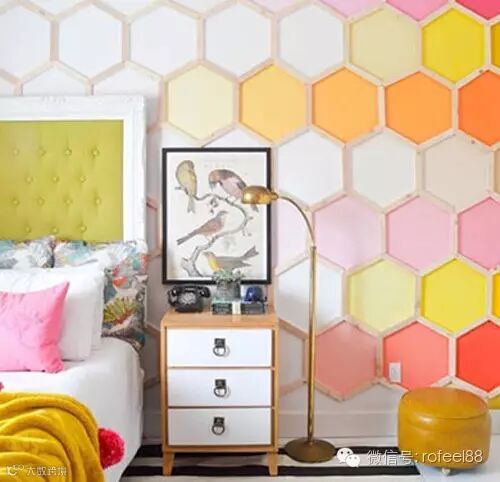 蜂窝状的墙面,颜色由浅入深的渐变和过度,显示出色彩的神奇与美妙,也让墙面变得缤纷五彩。