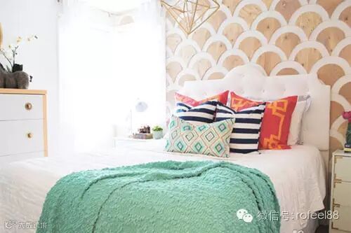 鱼鳞状的背景墙,有种中式的味道,用原木进行表达,又让这种中式有了现代的气息,看上去朴素自然。