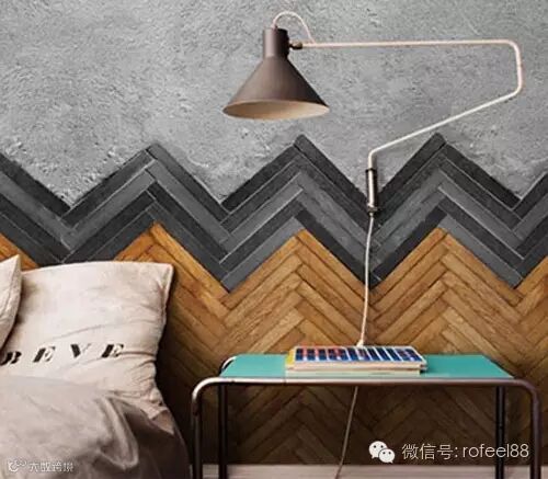 墙面采用了木块和砖块组合成三角波浪形,显示出材料本身的魅力,也凸显出一种质朴的生活质感。
