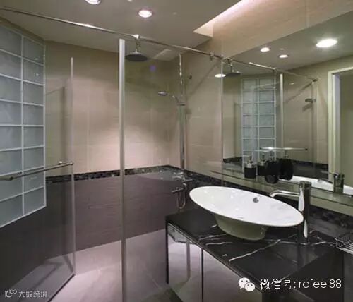卫浴选用玻璃砖让光线透进,淋浴干湿分离机能齐全。