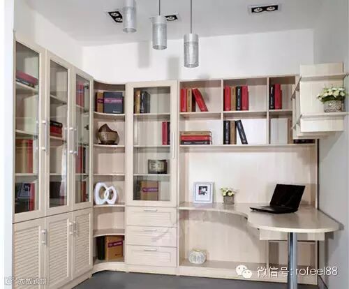 纯白色的墙面,两三盏点灯,没有多余的装饰给人以纯粹的美感。而这款书房在设计上主要以收纳功能为主,将大量的书籍分门别类的存放,保持了书房的简洁性。