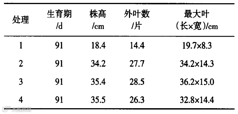 表2 不同施肥处理对白菜生育期和主要生物学性状的影响