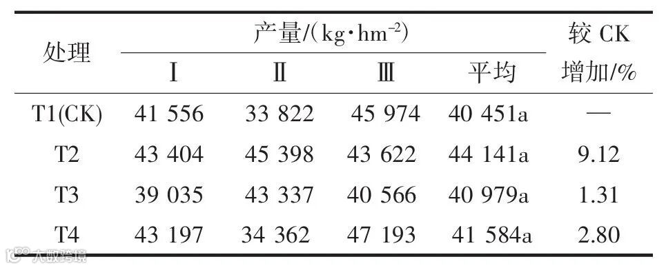 试验共设4个处理:T1:CK(常规施肥)、T2(聚谷氨酸肥料增效剂用量9.375kg/hm²)、T3(聚谷氨酸肥料增效剂用量18.75kg/hm²)、T4(聚谷氨酸肥料增效剂用量37.5kg/hm²)。