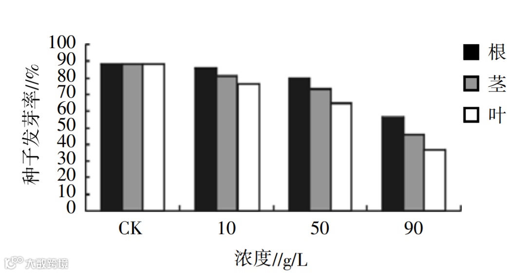 图4 哈密瓜同一器官(叶)不同浓度的水浸液处理对种子发芽率的影响