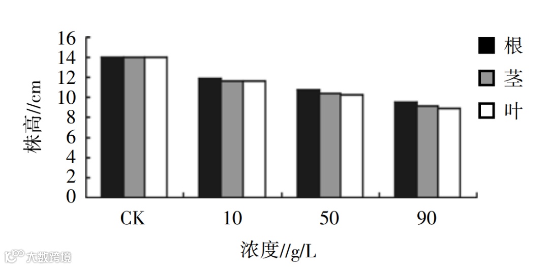 图2 哈密瓜不同器官不同浓度的水浸液处理对其株高的影响