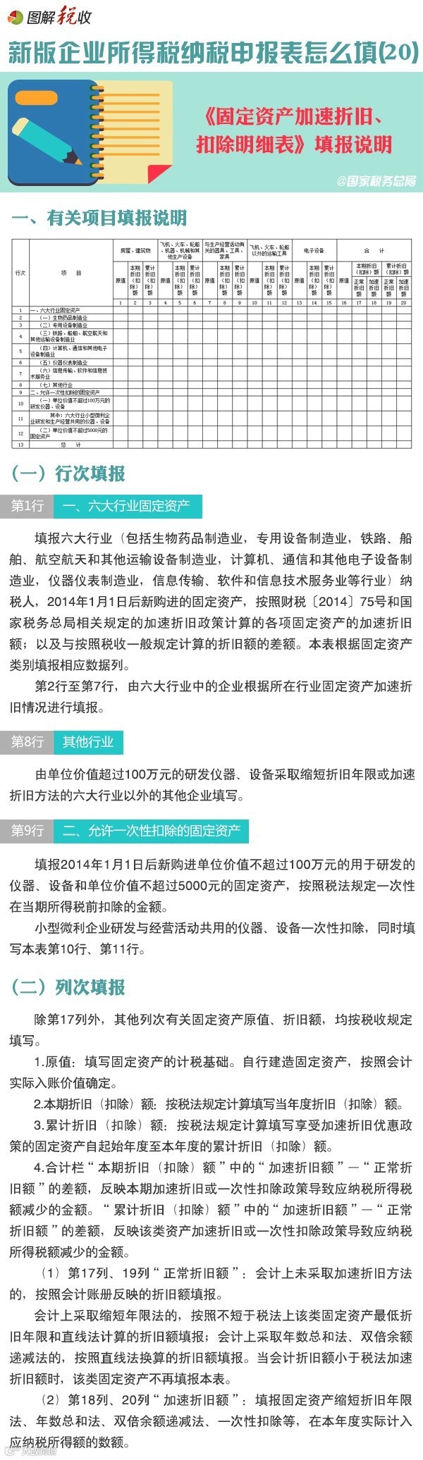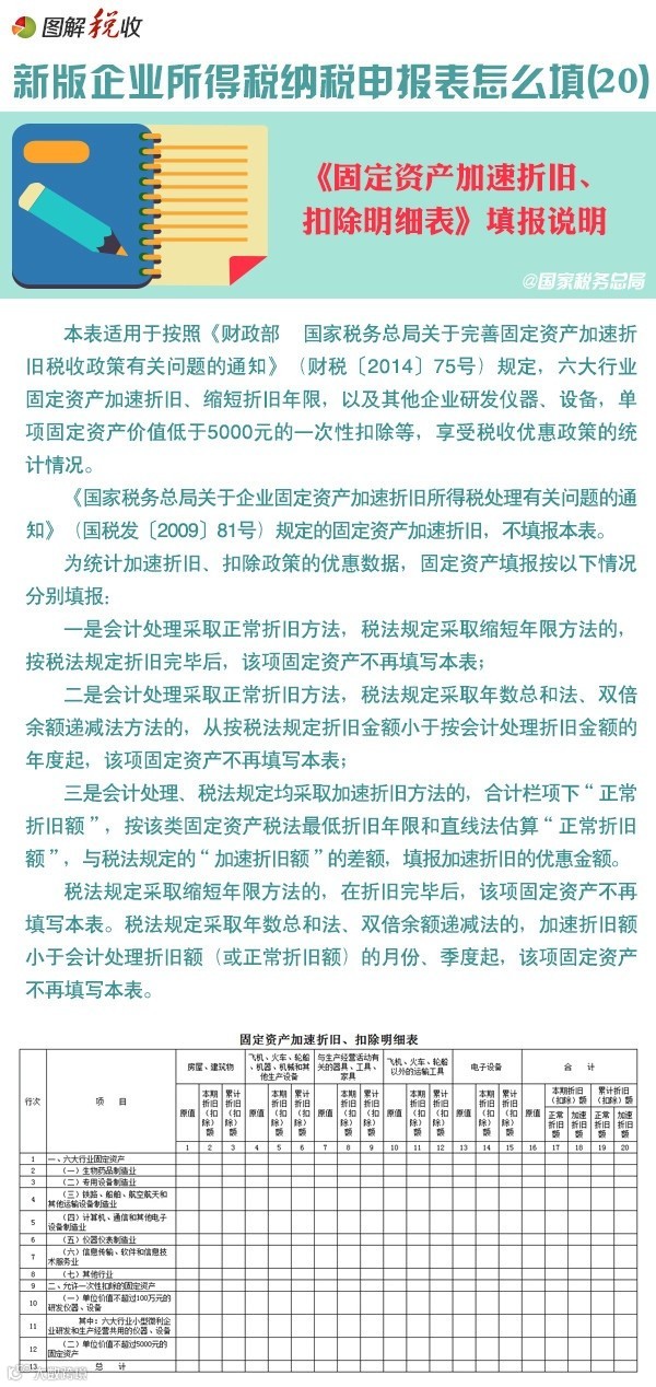 本表适用于按照财税[2014]75号文规定,六大行业固定资产加速折旧、缩短折旧年限,以及其他企业研发仪器设备,单项固定资产价值低于5000元的一次性扣除等,享受税收优惠政策的统计情况。