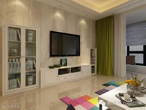 电视柜的设计遵循整体简欧的设计风格,设计高低柜,高度满足主人壁挂电视、和台放电视的需求,左右相互呼应,在满足储物的同时,设计有玻璃门,展示功能,又不失美感。整个客餐厅空间分区明确,布局合理,风格统一整体。