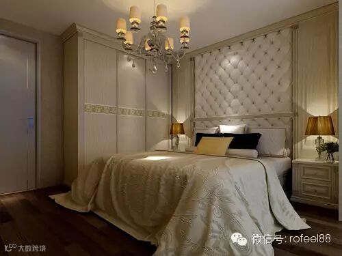 将衣柜、床头柜、床进行一体化的设计,保证卧室的井然有序,提高舒适性。