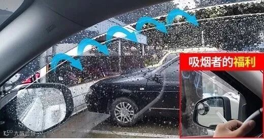 还有一种后视镜雨眉,实际使用效果来看并不太理想。只要车跑起来几乎没有任何作用。后视镜改变了空气流速,车速起来后,后视镜镜片这个部分相对来说气压低,气流会裹着雨水冲到镜片上。顶多就是停车时可以防止雨滴打湿镜片,行车中作用不大。