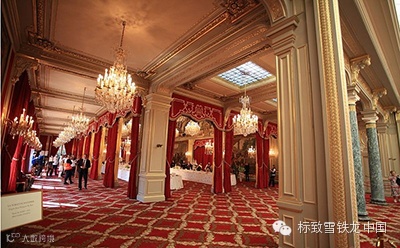 爱丽舍宫内共有369间大小不等的厅室,整体设计以金色为主基调,墙上悬挂著名油画和精致挂毯,四周陈设着17-18世纪的镀金雕刻家具和珍奇艺术品,再配以金色座钟和大吊灯,尽显皇家的尊贵与典雅。