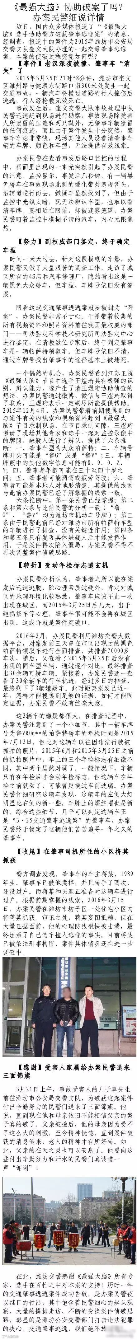 网易娱乐3月25日报道 2015年3月,山东发生一起肇事逃逸的案件,但由于环境等原因此案一直没有破获。12月,山东警方联系《最强大脑》选手王昱珩,希望协助破案。随后,有报道称王昱珩凭超强观察力提供了信息,近日警方抓获嫌疑人。对于此报道,3月24日,潍坊交警官方微博发表长文,称确实联系了《最强大脑》选手王昱珩等人协助查案,但其提供的六条推断线索与此前民警已掌握的线索重合或基本一致,没有发挥太大的作用。