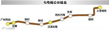 地铁七号线为全地下线,从广州南站至大学城南站,全长18.6公里,设车站9座,其中换乘站4座,东西向横贯番禺区。建成后,将对广州南站、大学城区域的出行带来便利,也可为人口和交通密度极高的南村、万博、汉溪等居住、商业区提供有效的交通疏导措施。