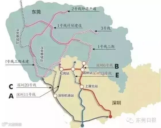 东莞1号线计划与深圳6号线在深圳荔林站实现衔接,未来的话,深圳东莞共有5条地铁互连。