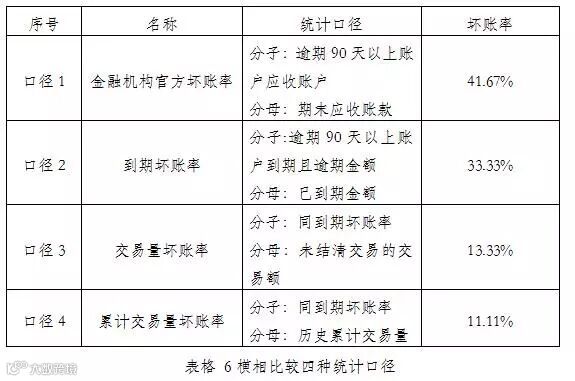 比较一下本文提到的4种常见统计口径,同样的交易额与逾期情况,所谓的坏账率指标,最高达到41.67%,最低却只有11.11%。