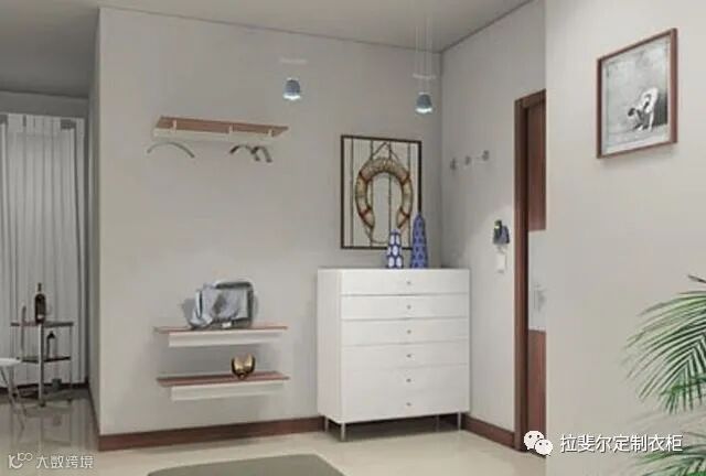 7、如果入户门正对餐厅或卫生间,入户柜可以当做隔断起过渡作用。