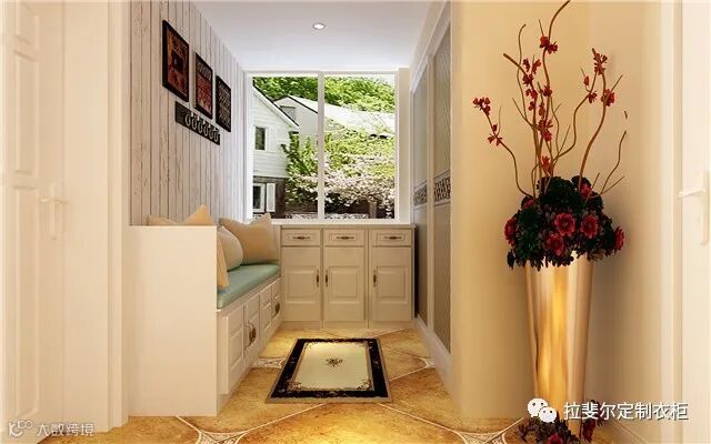 3、换鞋凳高度在45cm-60cm左右,换鞋凳下方做成抽屉或者格子,还可以储物。
