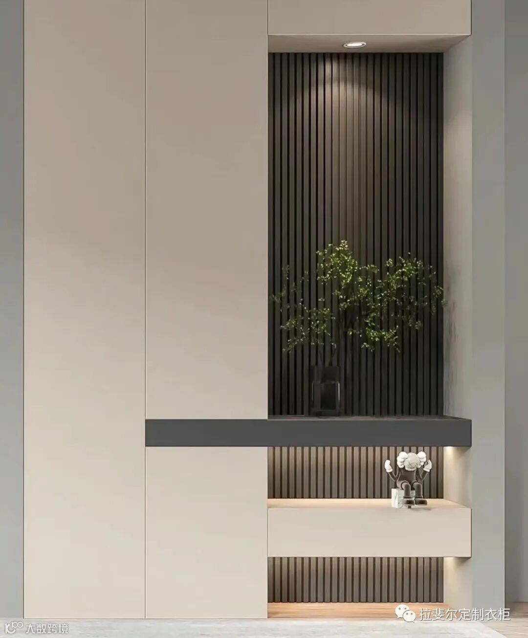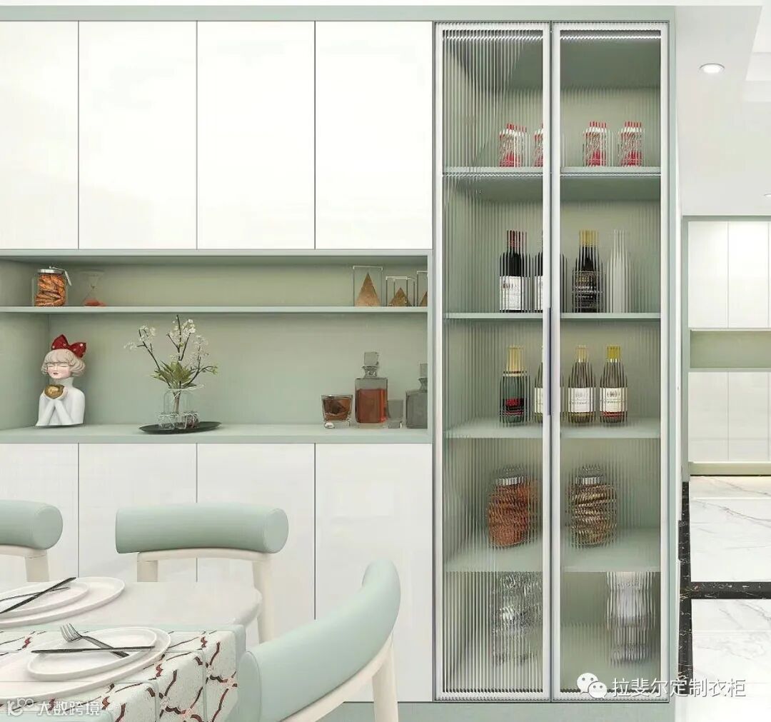 莫兰迪色是克制的美学,肤感板材与木色两种材质相互配合,在空间里施展潮流的奢意,木色中和了原本空间的艳丽与厚重,寻得一种宁静而高贵的艺术平衡。