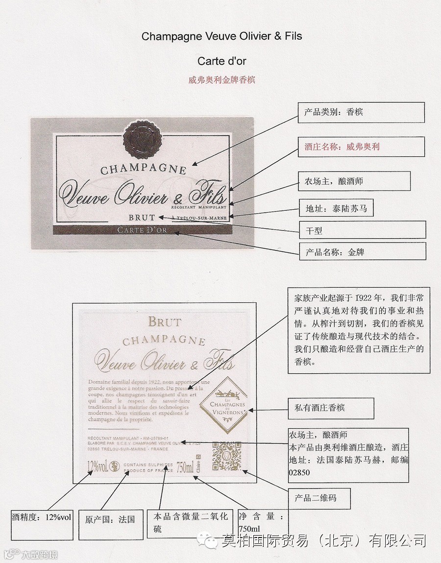 (上图:是威弗奥利金牌香槟标签翻译件)