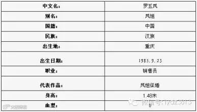 罗玉凤是重庆綦江人,因一系列雷人言论在网络上走红,被人称为“凤姐”。她自称懂诗画、会弹琴,精通古汉语,自称“9岁起博览群书,20岁达到顶峰,智商前300年后300年无人能及”。现主要研读经济类和《知音》、《故事会》等人文社科类书籍。2010年,罗玉凤在网上表示“我到美国了”,并声称“出国就没有打算回去”。