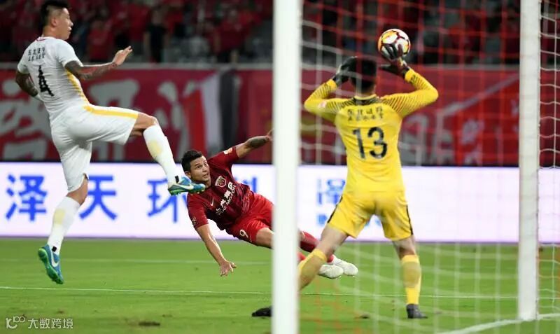 奥斯卡机敏地在长春亚泰禁区内断下皮球