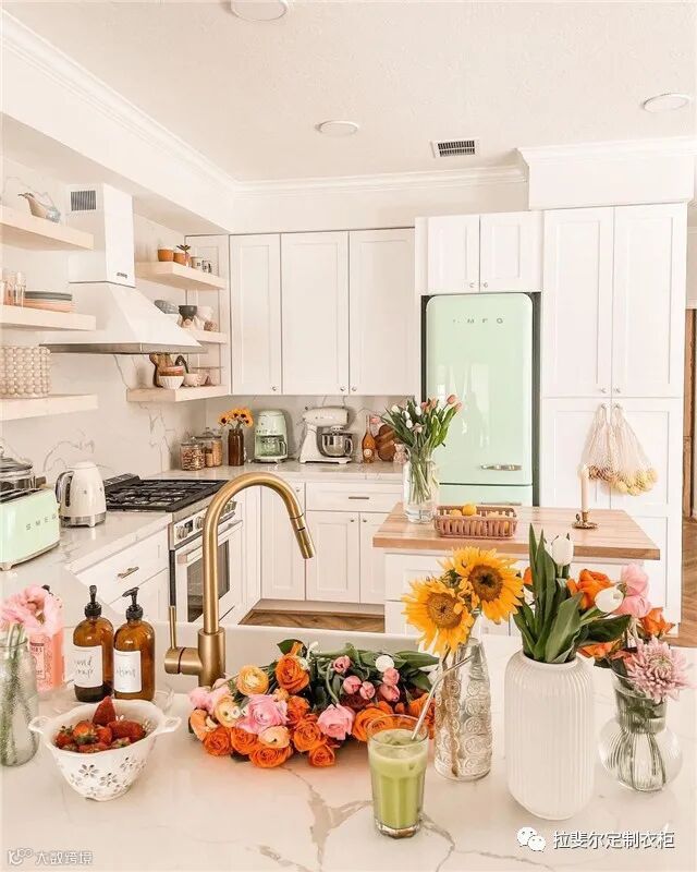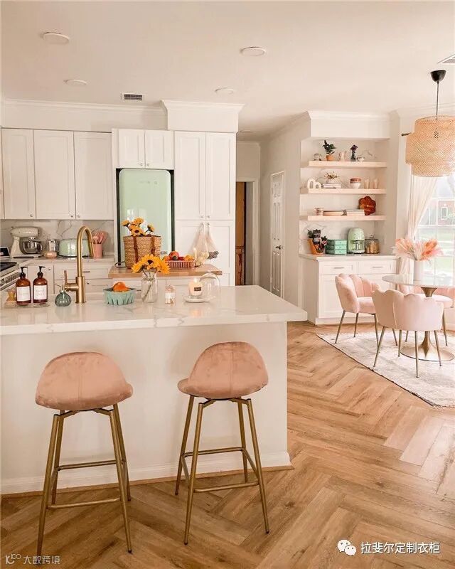 粉色的厨房并不意味着厨房不能有更多的颜色