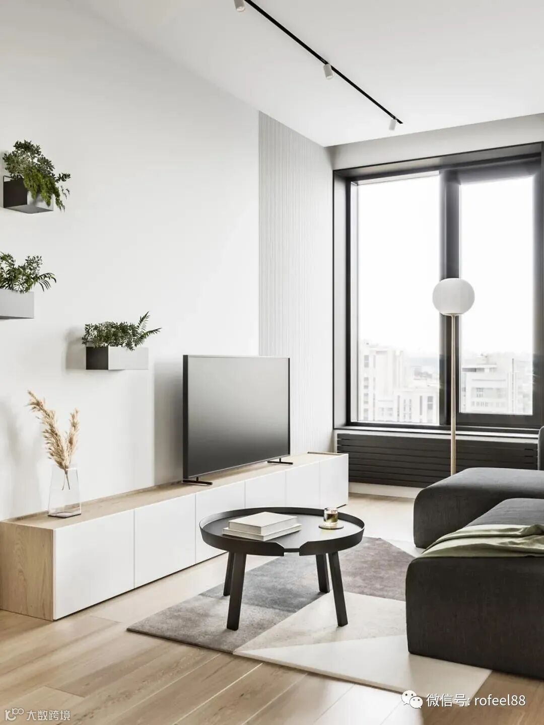 原木色+白色的电视柜,紧挨地面,与实木地板非常搭,给空间注入了日式风气息。