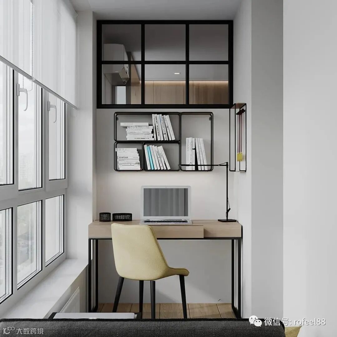 主卧的阳台也没闲着,被设计师打造成书房,木饰面与铁艺组合成书柜,一冷一暖赋予了空间独特的美感。