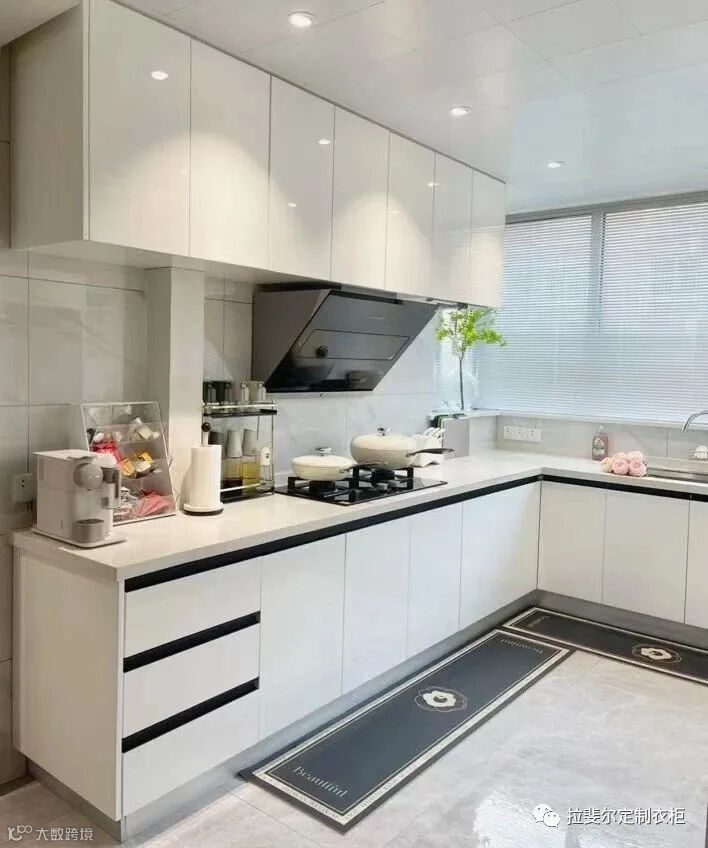 全屋定制家具在整体厨房的基础上发散到全屋家具定制,厨房家具由整体橱柜就囊括了细节部位包括冰箱、灶台、灶具、储物空间、烤箱、微波炉等等,整体橱柜把这些都按照尺寸规格囊括设计为一个整体,功能全收纳整理能力强,外观美观大气。