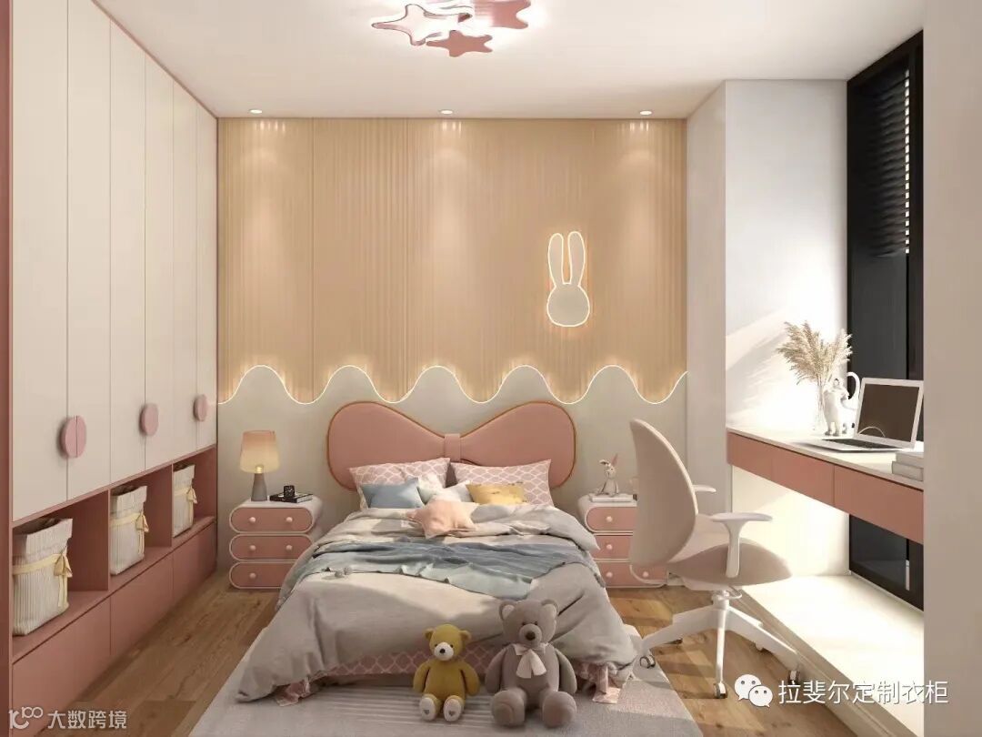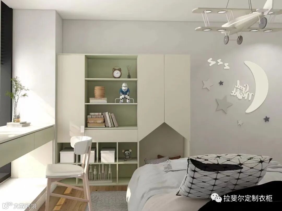 功能房除了衣帽间、书房、茶室、阳台房还有比较特殊的儿童房家具,儿童房家具像儿童房衣柜、书柜、写字台、等等进行定制能精准的符合儿童的身体和天性方面的需要,这些功能性的储物空间以及歇息空间在定制家具下均可以实现一房多用的功能,高效万能。