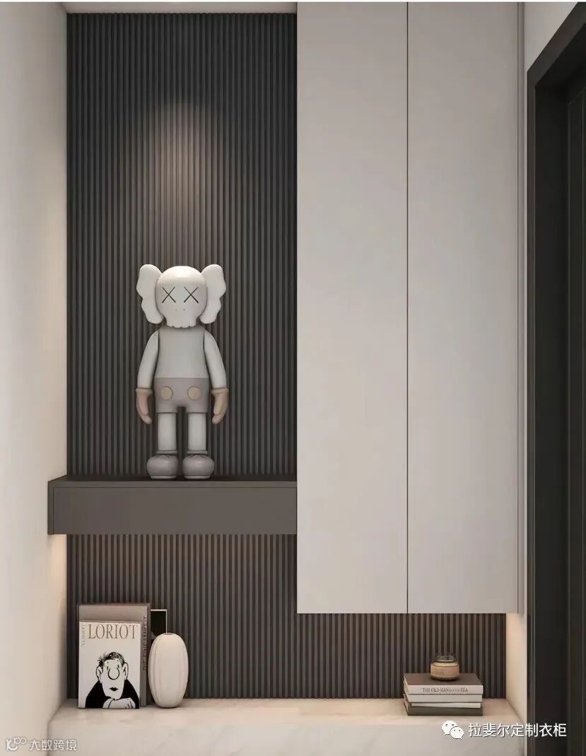 玄关可配置的家具有:玄关柜、鞋柜、衣帽柜、换鞋凳或者展示柜等等,通常情况下大家的玄关位置非常有限,根本容不下这么多不同功能的家具,定制家具就可以把这些需求进行整合,只设计一个柜子既有鞋柜的功能又有悬挂衣帽存放或者展示台架,能想到的能用到的都可以统一设计,让有限的空间满足最大的需求。