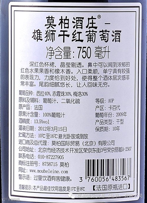 值得一提的是,“保质期”是一个具有中国特色的葡萄酒概念,因此,国产葡萄酒都标注了为期8年到10年的保质期,而外国人几乎从来都不关心葡萄酒保质期,而是更加关注葡萄酒的适饮期和陈年潜力。曾经的一段时间内,外国葡萄酒进入中国后,要履行任何进口食品的标签上均要标出其保质期信息的规定,因此,其背标也会标上保质期。不过,从2006年10月1日起,国家正式实施了《预包装饮料酒标签通则》,其中规定,葡萄酒和酒精含量超过10%的其他饮料酒可免除标示保质期,所以,近几年来,部分进口葡萄酒已经不再标注保质期了。