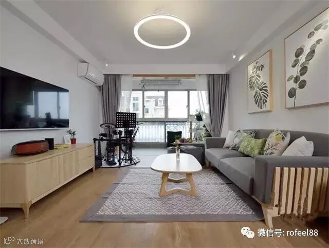拉斐尔衣柜跟随大家一起进入这套83㎡小户型的客厅看看,我们可以看见客厅整体设计相对简约一些,一张浅灰色的长条沙发上面摆放着颜色各异的抱枕。沙发搭配上原木风格的茶几和电视柜,电视柜可以用来收纳客厅内多余的物品。沙发背后的墙上挂着两幅画,使单调的客厅有了些许生机,整个客厅的角落都可以充分利用,用来改个书房或者休闲角都是非常不错的选择,可以看出来整体设计非常简约。