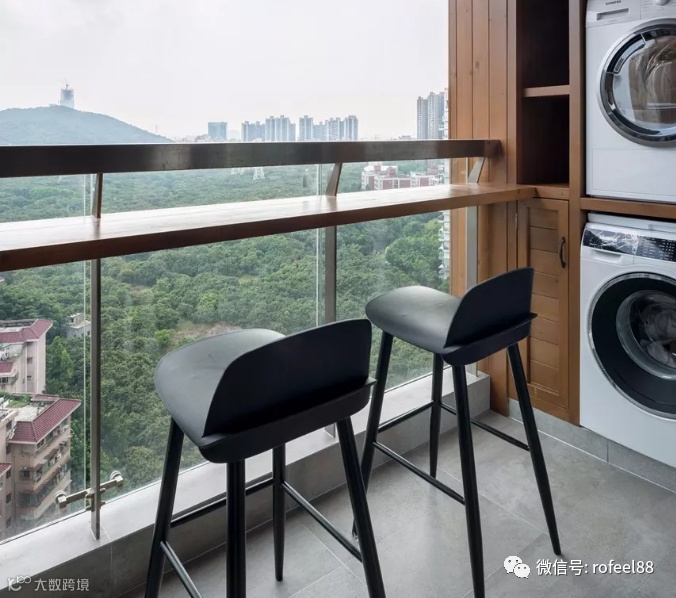 还可以把吧台搬到阳台或者窗边,对着蓝天白云喝喝小酒,吹着微风喝着下午茶也是很惬意的。