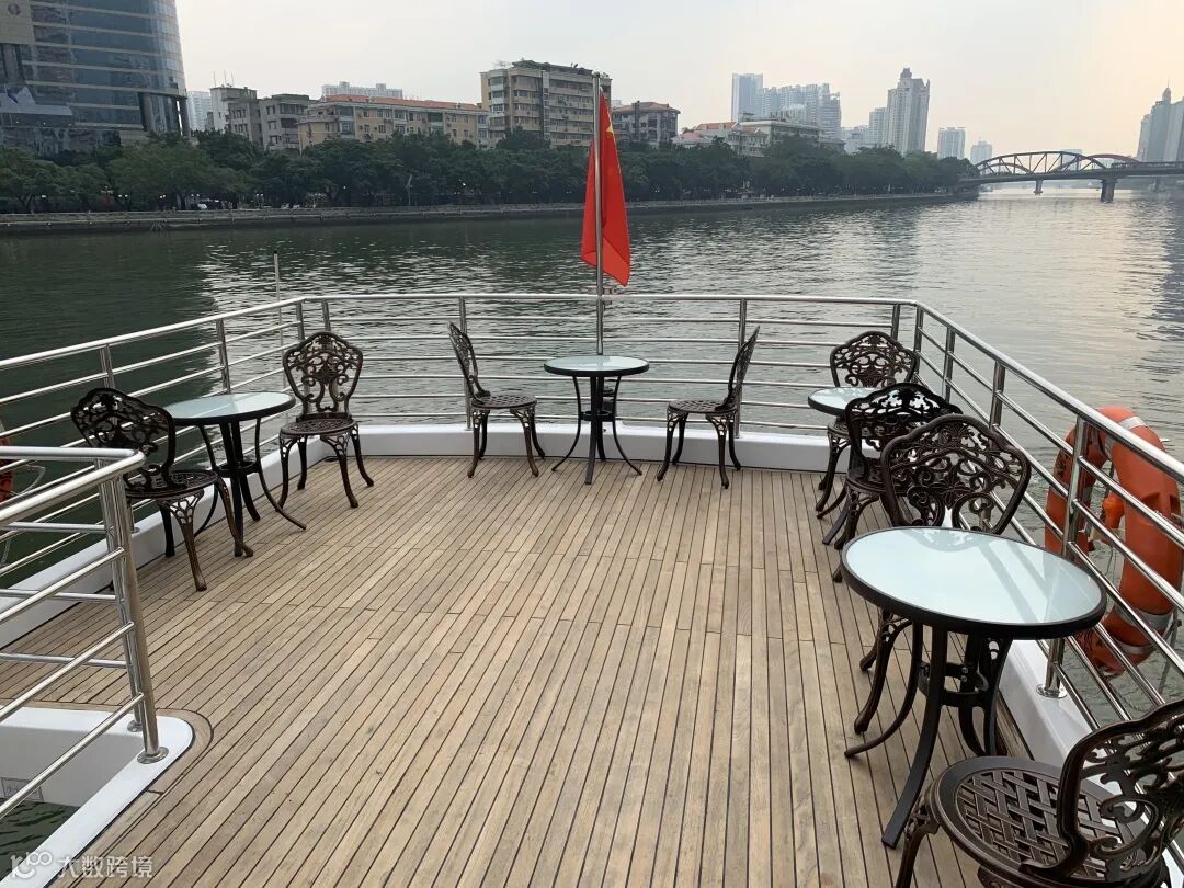 船尾为全方位的开放露天观光休闲区,设有花园式桌椅, 让您360度体验珠江两岸的璀璨美景。