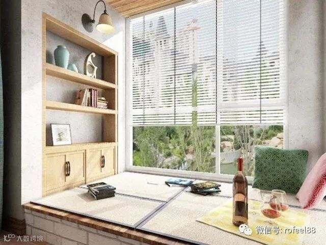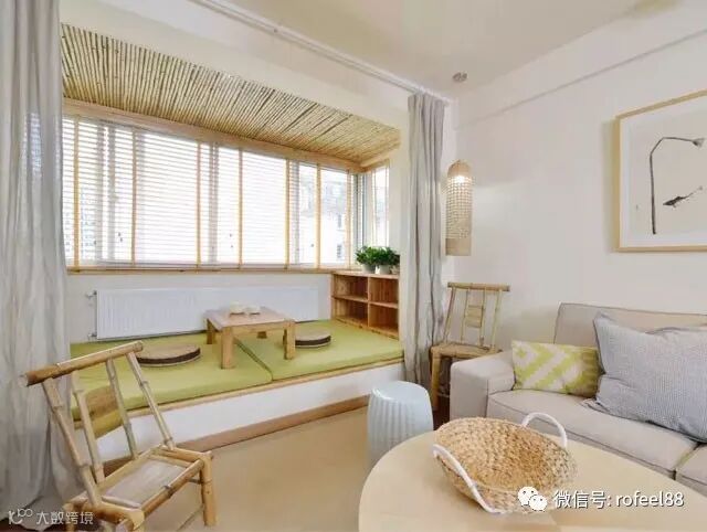 阳台的采光性和通风性非常好,安静的坐在榻榻米上喝着下午茶翻阅着书籍,是不是很惬意,真是非常实用且美观呢?
